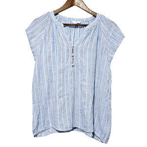 Time & Tru Womens Flutter Sleeve Popover Henley Button Front Top Linen Blend M