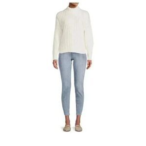 Time & Tru Women's Ivory Ribbed Polyester Knit Mock Neck Sweater