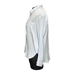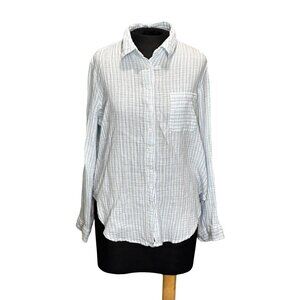 Time & Tru Womens Medium Button-Up Striped Shirt Blue & White Cotton Blend