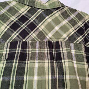 Time & Tru Women's Plaid Button-Up Long Sleeve Shirt Green & Black Small (4-6)