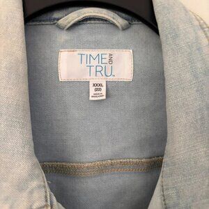 Time & Tru Women’s Plus 3X Light Blue Denim Jean Jacket Trucker Classic Casual