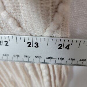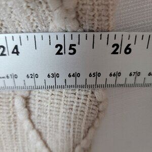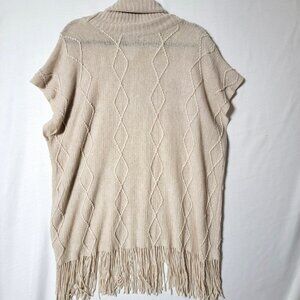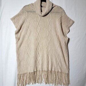 Womens Sweater Pull Over Poncho One Size Cowl Neck Fringe Hemline Short Sleeve, Creamy Beige