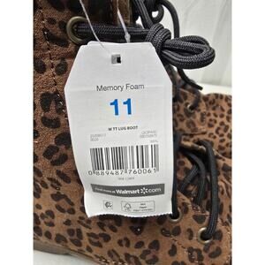 Time & Tru Women’s Size 11 Cheetah Leopard Print Memory Foam Boots Zip & Lace-up