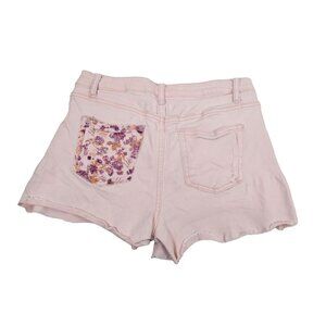 Time & Tru Womens Size 6 Pink Floral Patch High Rise Frayed Hem Denim Shorts
