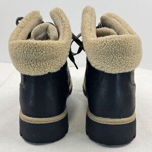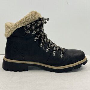 Time Tru Womens Size 8 Black Hiker Ankle Boots Sherpa Trim Lace Up Lug Sole