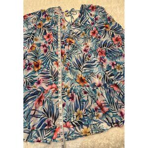 Time & Tru Women's Swimsuit Cover Tropical Print 100% Polyester Size XL (16-18)