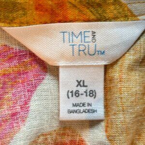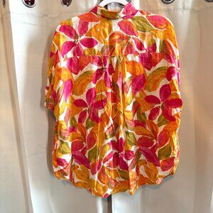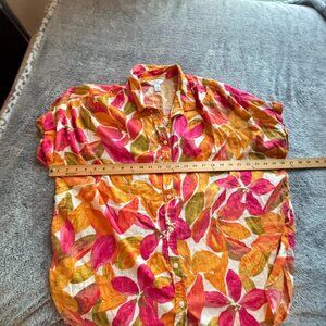 Time Tru Womens Top XL Floral Tropical Linen Lyocell Blend Dopamine Fall 19064