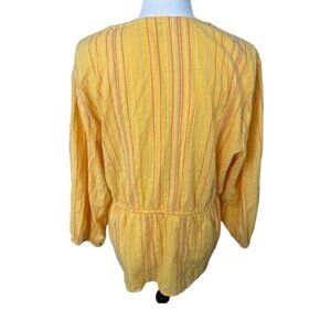 Time & Tru Women's Yellow Wrap Blouse Top Peplum Striped V-Neck Size XL 16-18