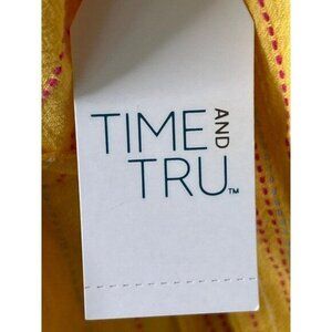 This Time & True blouse, size XL (16-18), is a colorful addition to any wardrobe. With a tie waist and a blend of cottagecore, bohemian, and western tribal styles, it's new with tags and made of comfortable cotton.