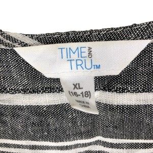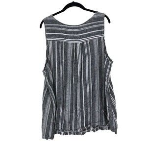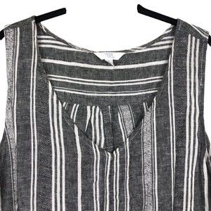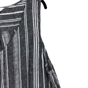 Time & Tru XL Sleeveless Linen Blend Lagen Tank Top White & Grey Stripes w/Pocke