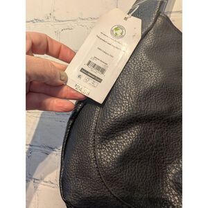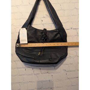 Black faux leather time and true new tags. Shoulder purse. In excellent new condition. Unused. See pictures for measurements.