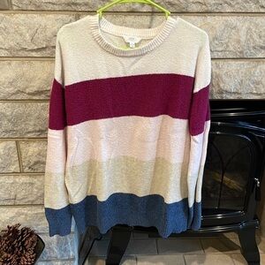 Time & Tru striped sweater large maroon blue tan white