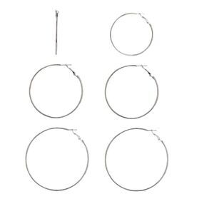 Time and Tru 3-On Imitation Rhodium Hoop Earring Set. Includes 55mm, 65mm and 75mm hoops.