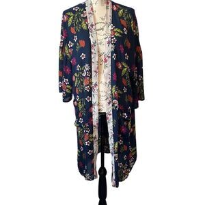 Time & Tru Floral Kimono Beach Swim Suit Cover L