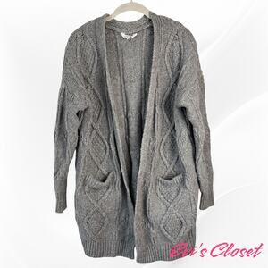 Time True Women's Cardigan Open Front Sweater Grey XS (0-2) 2 Pockets