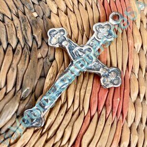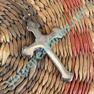 Vintage time worn solid sterling silver crucifix pendant with smooth wear. It needs a jump ring. Measures 1 3/8" tall. Weight: 2 grams. Marked 925.