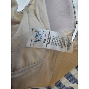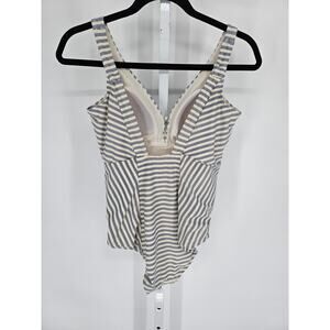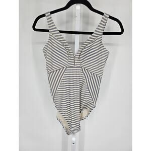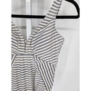 Time and Tro Womens Sz M One Piece swimsuit Blue Cream Striped V Neck