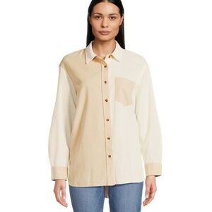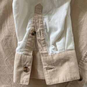 Wore only once. Size XXL. Cream color and tan. Two tone. Corduroy material. A cute top for spring and fall. Wear alone or layer on top of graphic tees. 100% cotton!