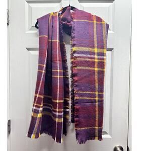Time and Tru Acrylic Burgundy Yellow Purple Plaid Blanket Wrap Scarf 80"x27"