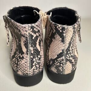 (1) Time and Tru women's ankle boots in bold black and beige faux snakeskin print