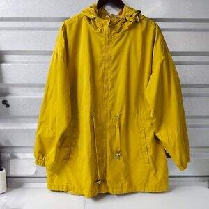 Keywords: anorak jacket, hooded jacket, lightweight jacket, drawstring waist, plus size jacket, women's jacket, casual jacket, outdoor jacket, zip up jacket, Time and Tru, 1X, yellow jacket, rain jacket