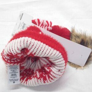 Time and Tru Beanie Pic Your Pom Interchangeable Pompoms Faux Fur Accent Snowflake