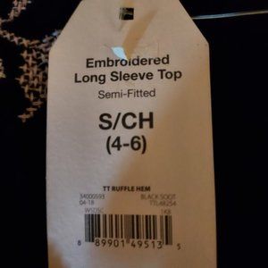 Time and Tru Black Embroidered Roses Long Sleeve Tunic Size S NWT