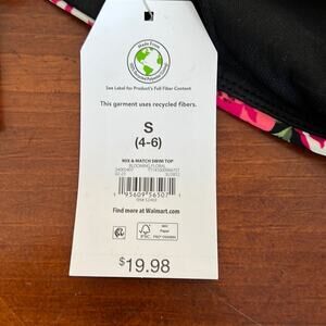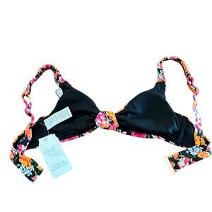 Time and Tru Black Floral Print Bikini Top Woman Size Small 4/6 NWT
