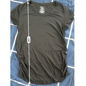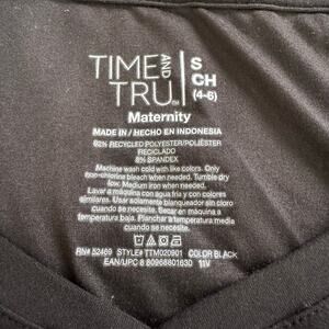 This black maternity tee from Time and Tru in size Small is designed with side ruching to comfortably grow with your bump. Soft and stretchy with short sleeves, a v-neckline, and a flattering fit perfect for daily wear or layering.