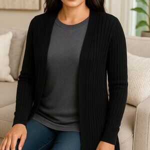Time and Tru Black Ribbed Open Front Cardigan - Med (Fall Collection)
