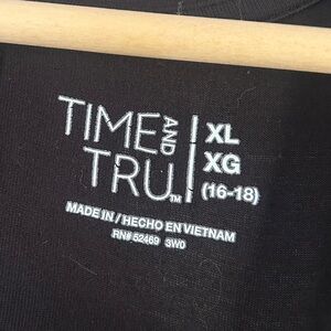 This sleek black sheath dress from Time and Tru features a sleeveless design and a classic crew neck, making it perfect for both casual and work settings. The midi length adds a touch of sophistication, while the minimalist style ensures versatility for everyday wear.
