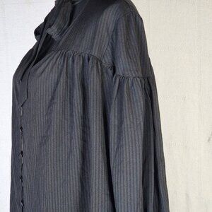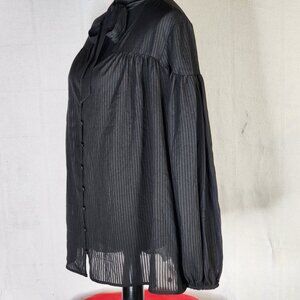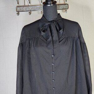 Time and Tru Black Soot Long Sleeve Tie Neck Polyester Relaxed Fit Button Up Top