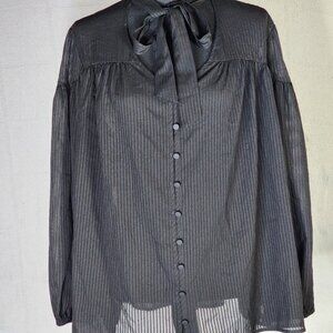 Time and Tru Black Soot Long Sleeve Tie Neck Polyester Relaxed Fit Button Up Top....Great Top to Wear Over Something Else...Very Lightweight and Flowy But Also Structured and Fashionable.....Brand New with Tags.....XL 16-18 and XXL 20