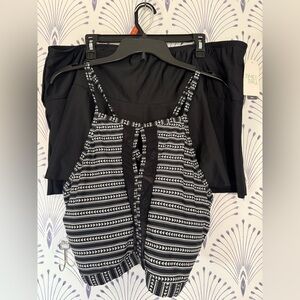 Stylish and comfortable, this Time and Tru bikini set features a chic black and white pattern. Perfect for a day at the beach or poolside lounging.
