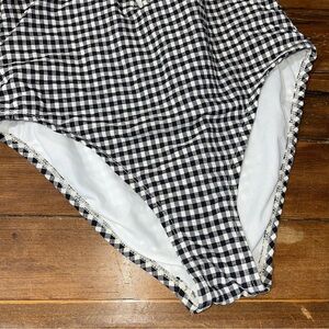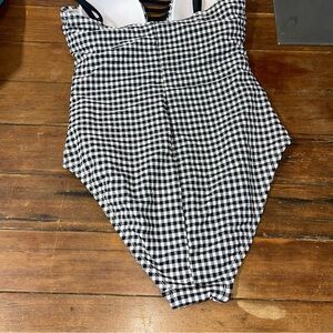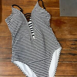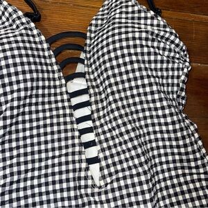 Chic checkered swimsuit with a stylish design. Features a classic black and white pattern.