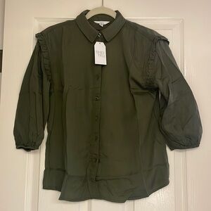 Time and Tru Blouse – Hunter Green, Ruffle Sleeves - Size XS