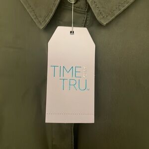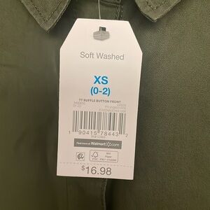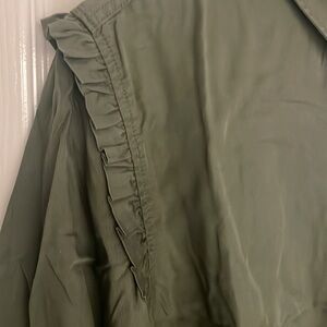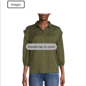 Elevate your wardrobe with this stylish hunter green blouse from Time and Tru. Featuring feminine ruffle sleeves and a flattering silhouette, it’s perfect for both work and casual outings.