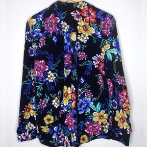 Time and Tru Black Floral Blouse XL with Pocket , button front, long sleeves, 100% polyester