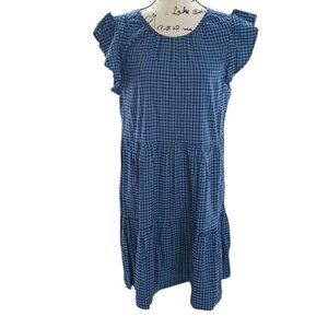 Chic blue gingham dress. Features ruffled sleeves. Perfect for casual outings.