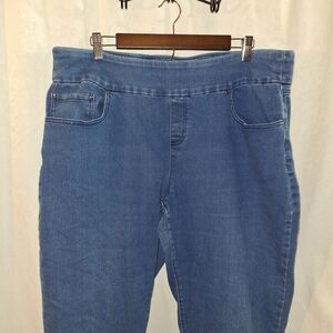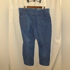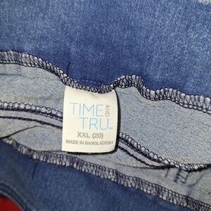Experience the perfect blend of comfort and style with these Time and Tru Blue Jeggings. Crafted in a classic blue hue, these jeggings offer a sleek, streamlined fit that complements any outfit. The subtle fading adds a touch of character, making them a versatile addition to your wardrobe. side to side measurements is 19" with stretch rise is 12" inseam is 28" top of waist to bottom hem is 39.5 " bundle more items for bigger deals Bin-142