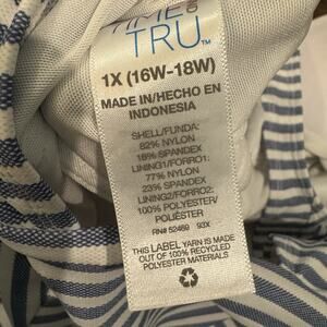 Time and Tru Blue Striped 1 Piece Swimsuit Plus Sz 1X (16W-18W) Coastal Nautical