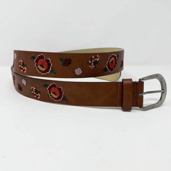 Time and Tru Embroidered Floral Vegan Leather Faux Leather Brown Belt Women's Western Boho Bohemian Plus Size Curvy American Country Americana Cowboy Flowers Colorful Feminine