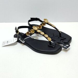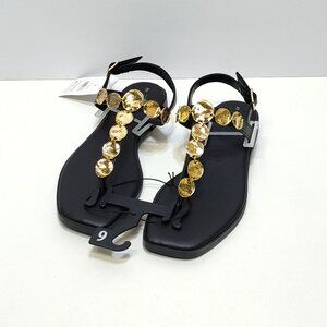 Time and Tru Coin Embellished Thong Sandals Size US 6 Adjustable Ankle Strap NWT