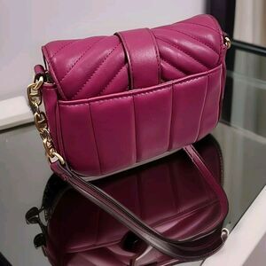 Time and Tru Crossbody Bag Pink Handbag Quilted Foldover Flap Ext Slip Pocket