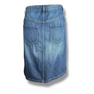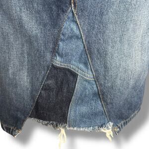 Time and Tru Denim Midi Skirt Size 8 Dark Wash Frayed Hem Patchwork Retro