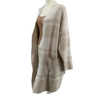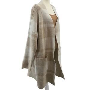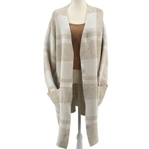 Time and Tru Double Knit Duster Cardigan Womens XXL White Tan Oatmeal Plaid Open