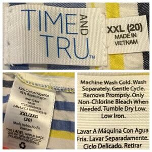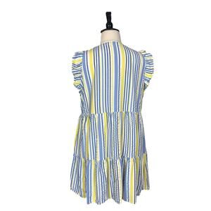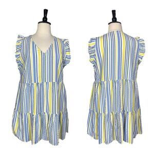 Time and Tru Dress V-neck Ruffle Sleeve Yellow Blue Stripe Women’s Size XXL