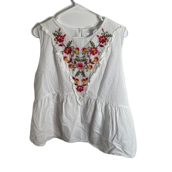 Time and Tru Embroidered Sleeveless Top XL Red Green Tank Top White