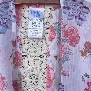 Time and Tru Floral Kimono with Lace Detail