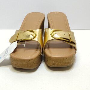 Time and Tru Gold Buckle Cork Wedge Platform Memory Foam Sandals Size 10 NWT